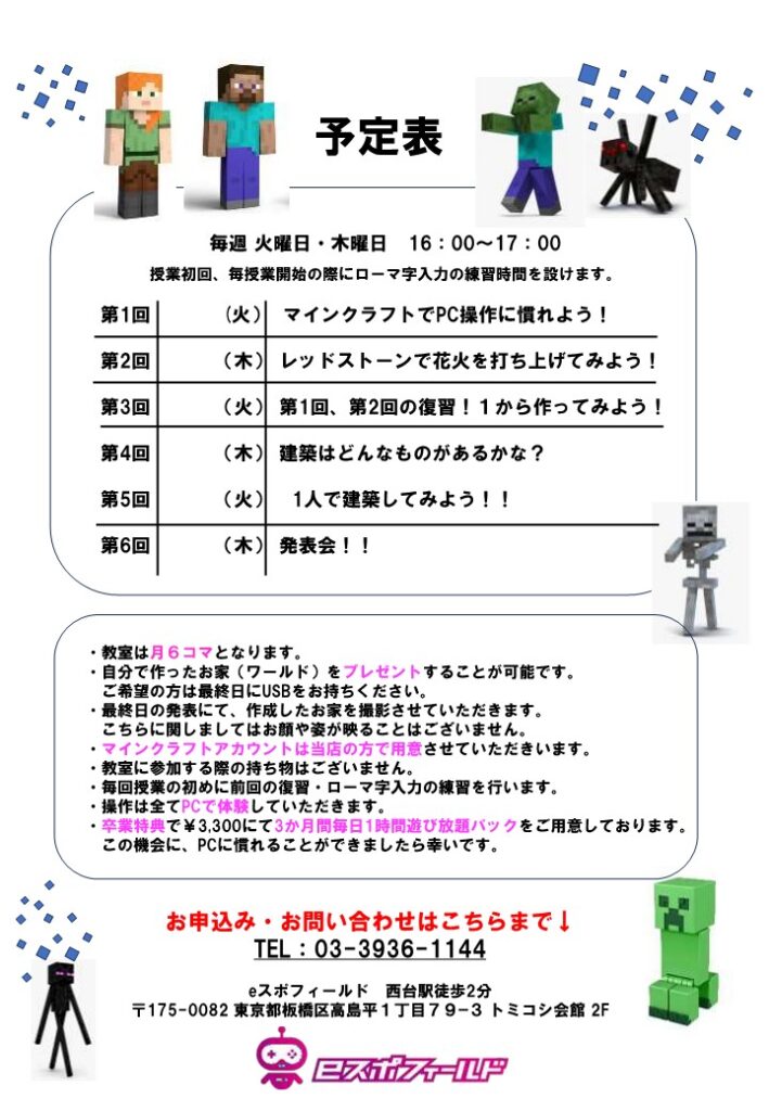 こちらは小学生限定の、マインクラフトを使った教室となります。