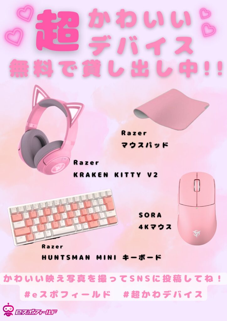 #eスポフィールド や#超かわいいデバイス など、ハッシュダグを付けてのかわいい投稿をお待ちしております!