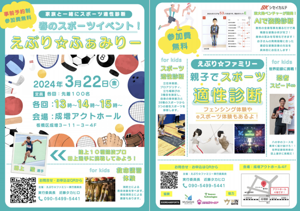 2024年3月22日(土)、成増アクトホールにて開催された「えぶり・ふぁみりー」に当店eスポフィールドが出張参加致しました! 「えぶり・ふぁみりー」はスポーツに関する8つのコンテンツを用意。メインとなるスポーツ適性診断の […]