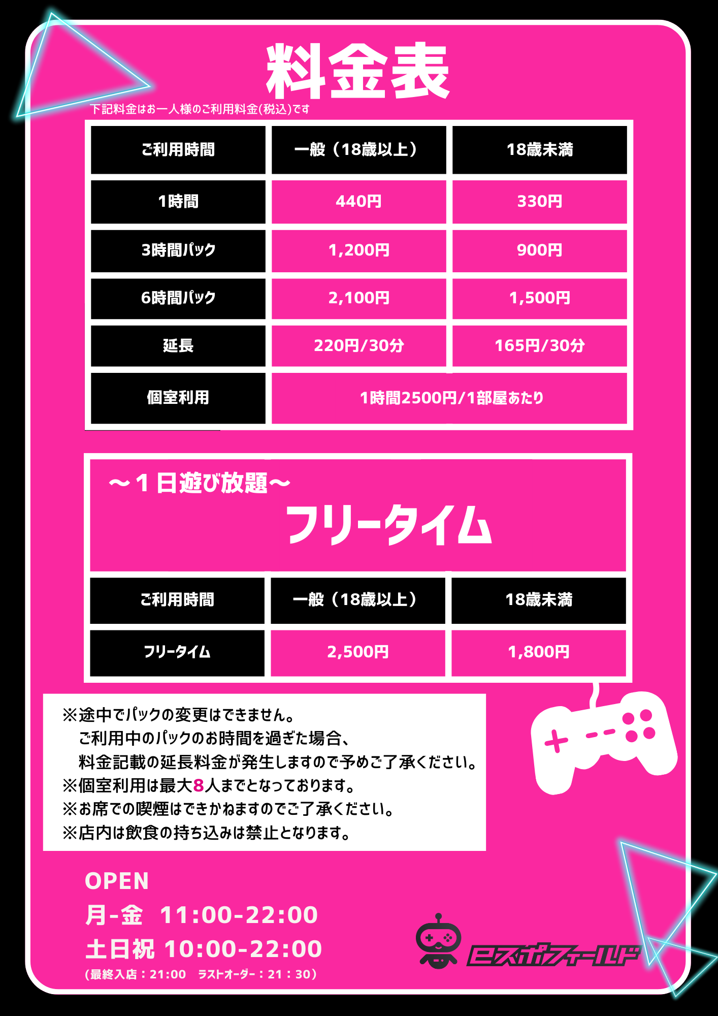 ご利用時間 | 18歳未満 | 一般(18歳以上) |